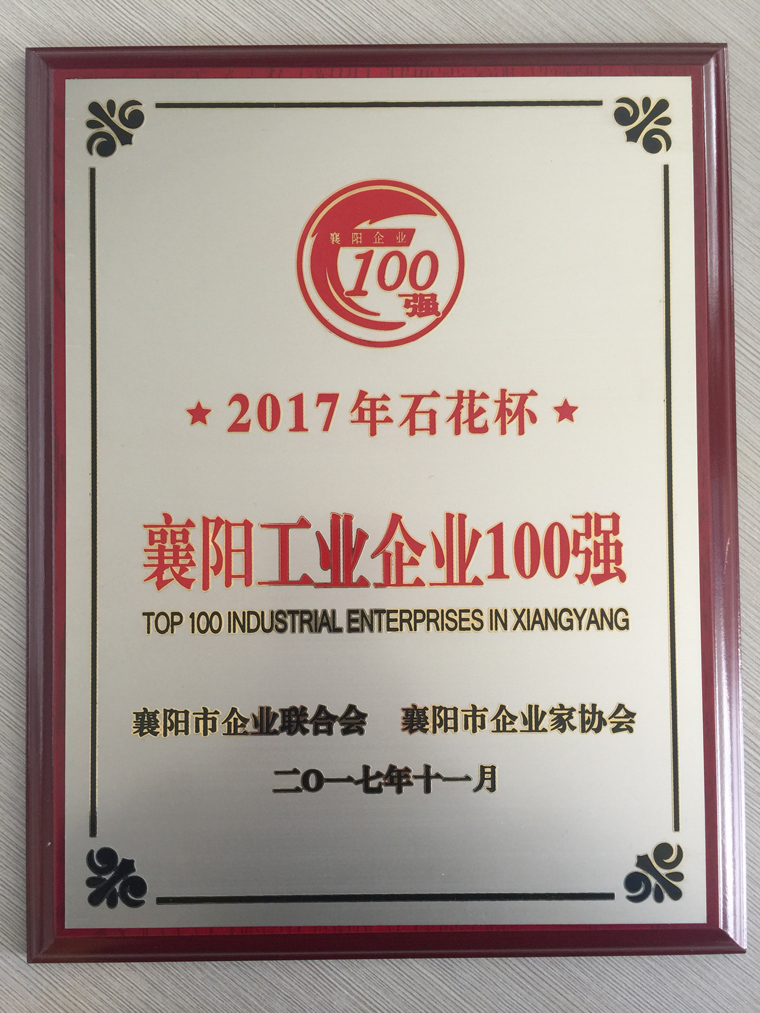 2017年11月底,襄阳市发布2017年工业企业百强,该名单由市企业联合会、企业家协会以2016年企业产值、纳税总额为排序指标,以社保缴纳额为参考指标,按照主营业务收入、实际缴税额各50%的权重进行排序。
