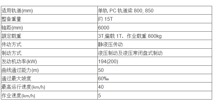 主要适用于跨座式单轨交通,用于施工阶段轨道供电、信号、通信、机电设施的运输及安装,运营阶段轨道梁设备的检修维护及人员、器材的运输,救援牵引。具备极高的综合作业能力。